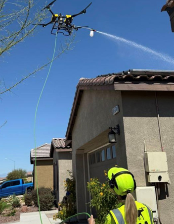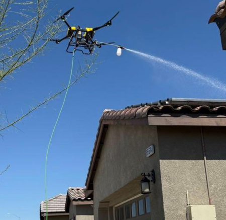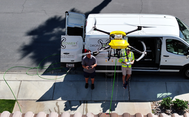 Our team prepares the home for our drone cleaning. Safety is our top priority. Safety cones and signs placed; cleaning drone preflight checks are accomplished.